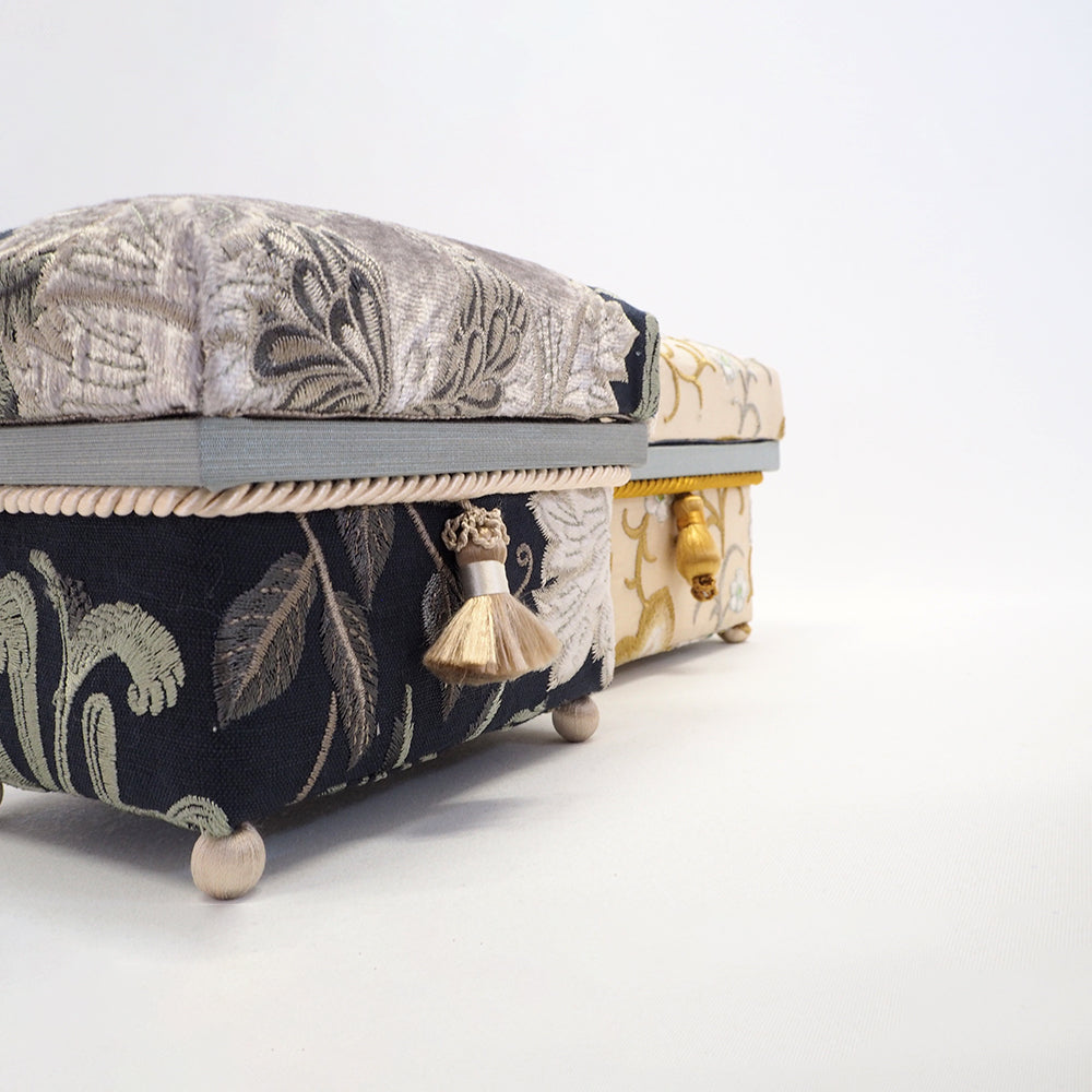 当店では、NHK「あさイチ」でも紹介された前田工房の茶箱を販売しています。他では手に入りにくいタッセルやリボン・ブレード・ロープなどの装飾品も豊富にカラー取り揃えております。